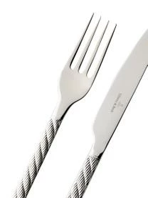 Das 24-teilige Besteck-Set aus Edelstahl mit dekorativen Griffen besteht aus je sechs Tafelgabeln, Tafelmessern, Tafellöffeln und Dessertlöffeln.